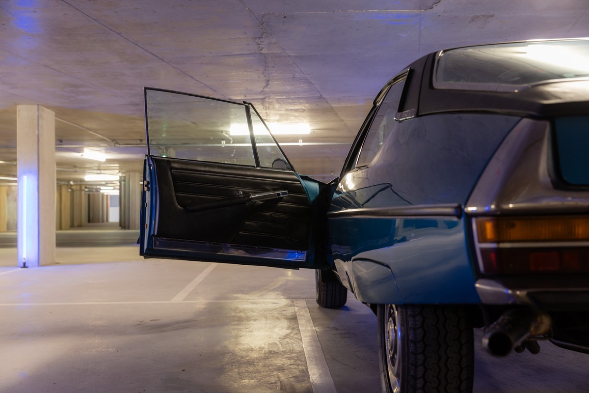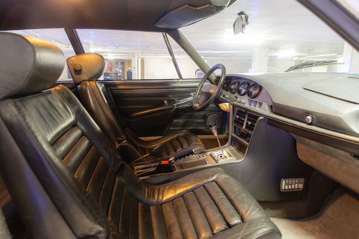 Cet exemplaire se présente dans la teinte extérieure Bleu de Brégançon métallisé (AC 637), associée à un intérieur noir en cuir. La carrosserie est en très bon état général. L’intérieur est dans son jus, bien conservé et cohérent avec l’âge du véhicule, sans dégradation majeure. L’instrumentation de bord est fonctionnelle.