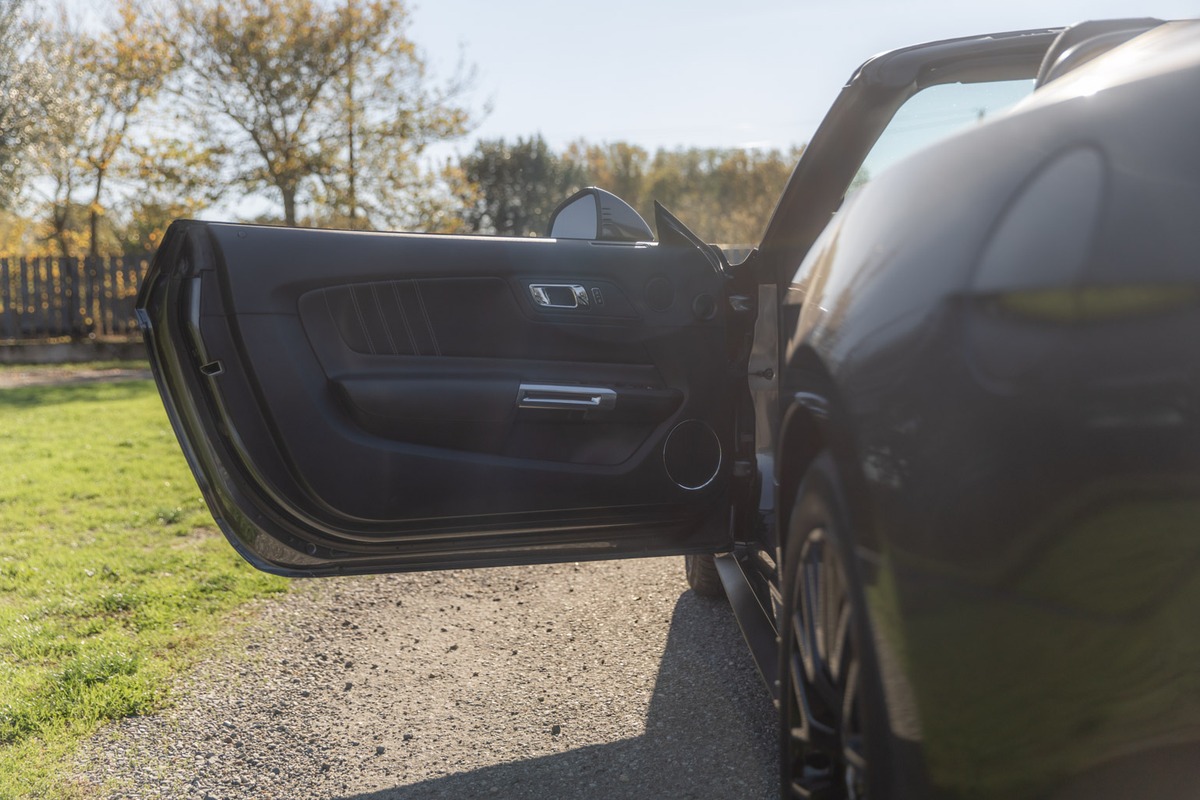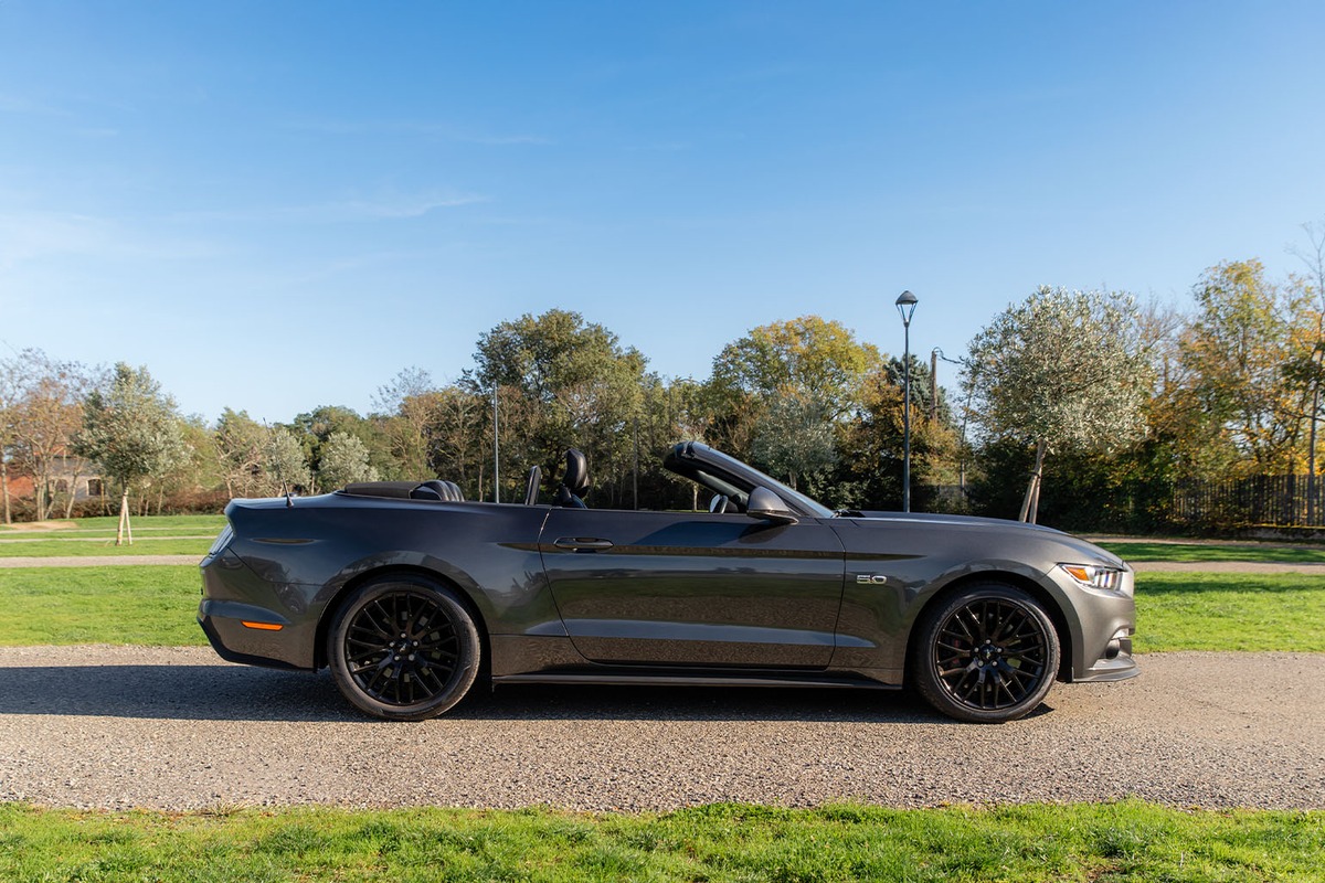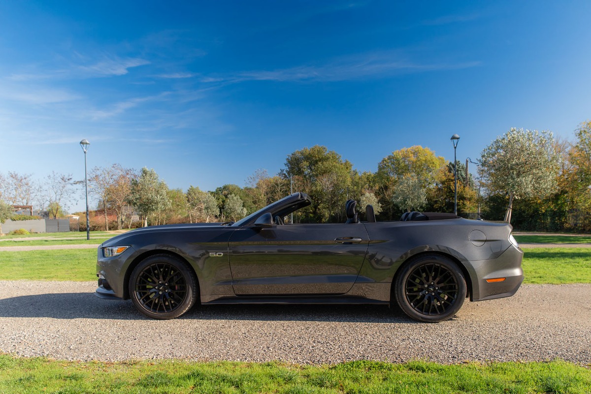 Notre Ford Mustang GT V8 Cabriolet, mise en circulation le 19 avril 2017, totalise aujourd’hui 38 000 km. D’origine allemande, elle est actuellement immatriculée en France et a changé de propriétaire le 12 septembre 2025.