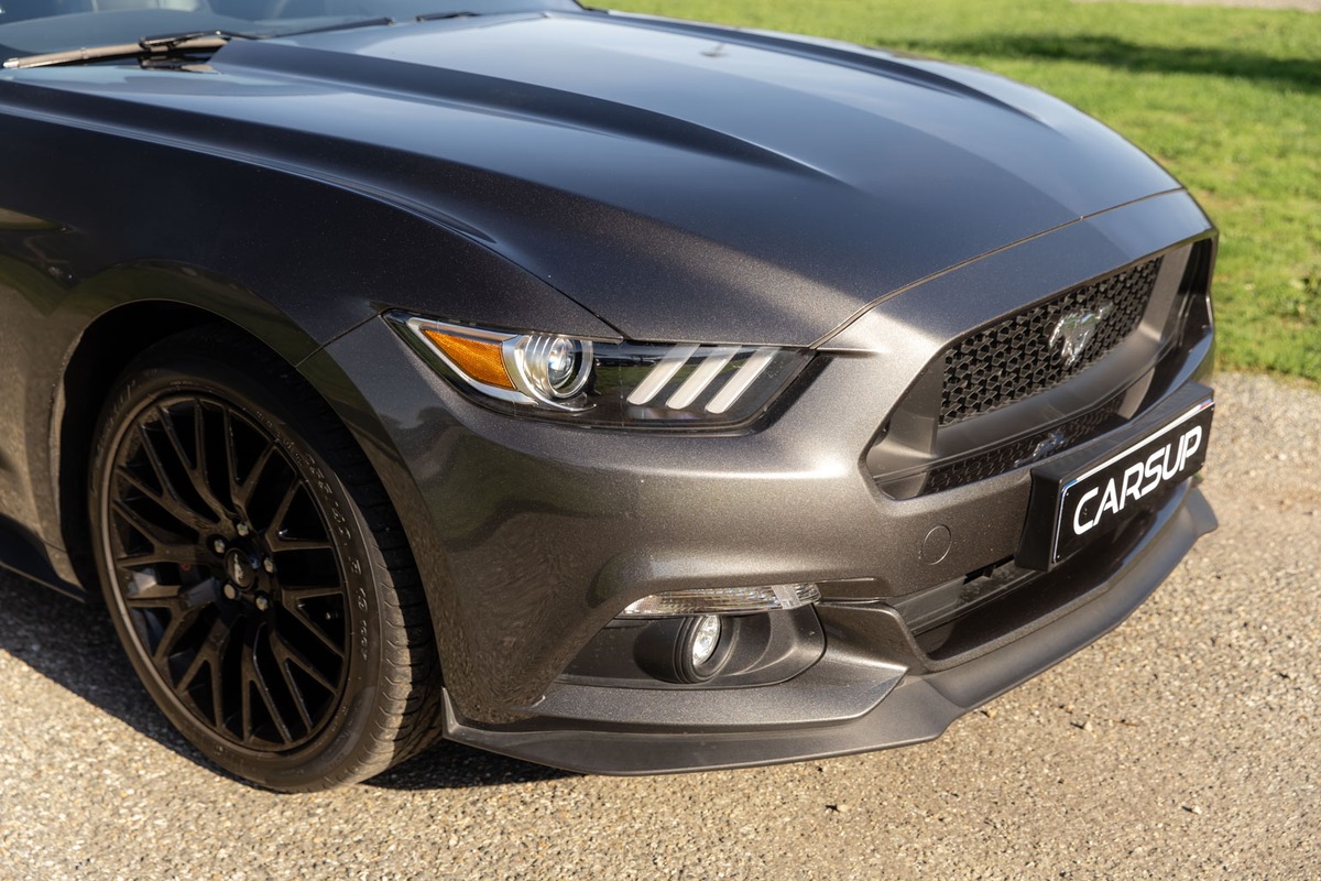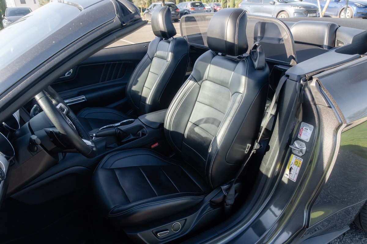 Présentée dans la teinte Gris Magnetic associée à un intérieur noir, cette Mustang se trouve dans un excellent état général. La carrosserie ne présente aucun défaut notable, l’intérieur est parfaitement conservé et l’instrumentation de bord fonctionne sans aucune anomalie. La mécanique est en excellent état, avec un suivi complet en concession Ford depuis l’origine.