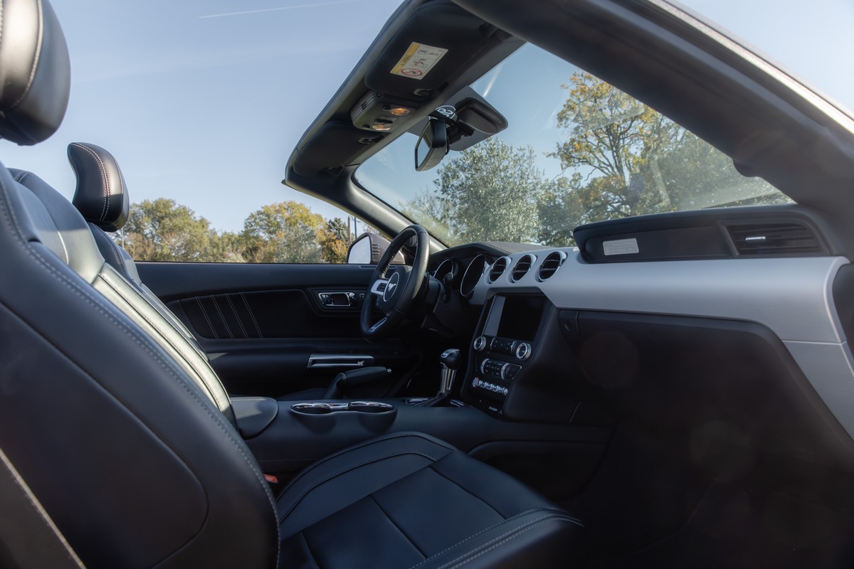 À bord, l’ambiance mêle influences américaines et montée en gamme européenne. Les commandes imposantes et l’instrumentation classique rappellent l’héritage, tandis que les systèmes multimédias et les aides à la conduite ancrent le modèle dans son époque. On y retrouve cette sensation de conduire une Mustang réinventée, plus aboutie, mais toujours musclée dans l’âme.