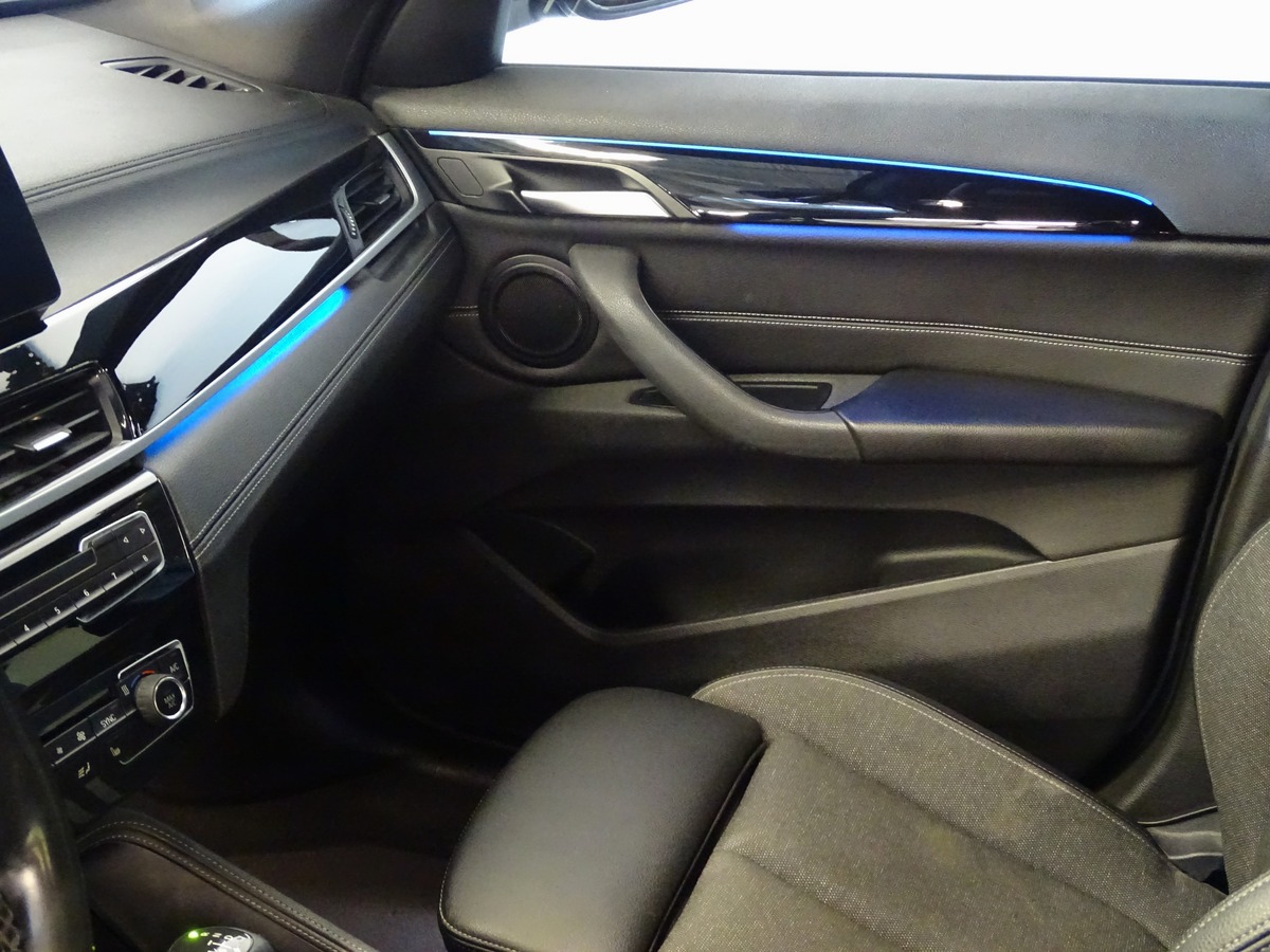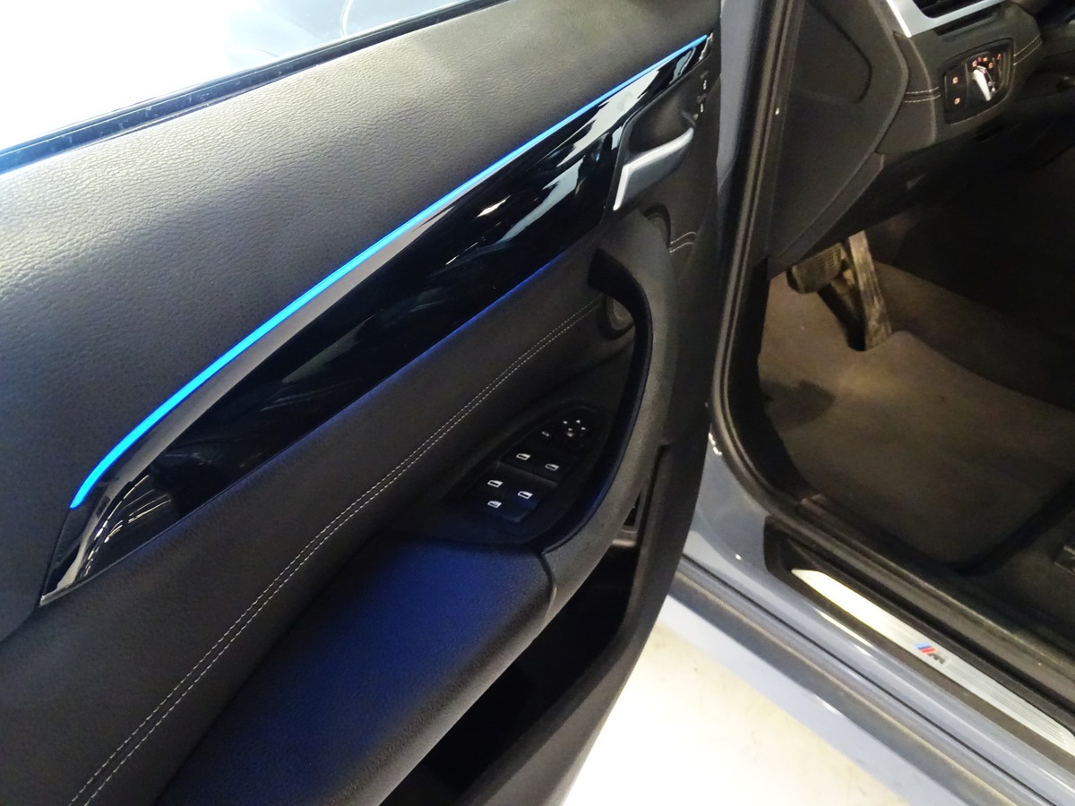 • M SPORT : Éclairage d’ambiance avec deux couleurs au choix - Ciel de pavillon M Anthracite - Sièges Sport Advanced - Volant et pommeau M - Ciel de pavillon anthracite - Seuil de porte M - Volant Sport M gainé cuir - Réglettes lumineuses à LED exclusives dans les contre-portes